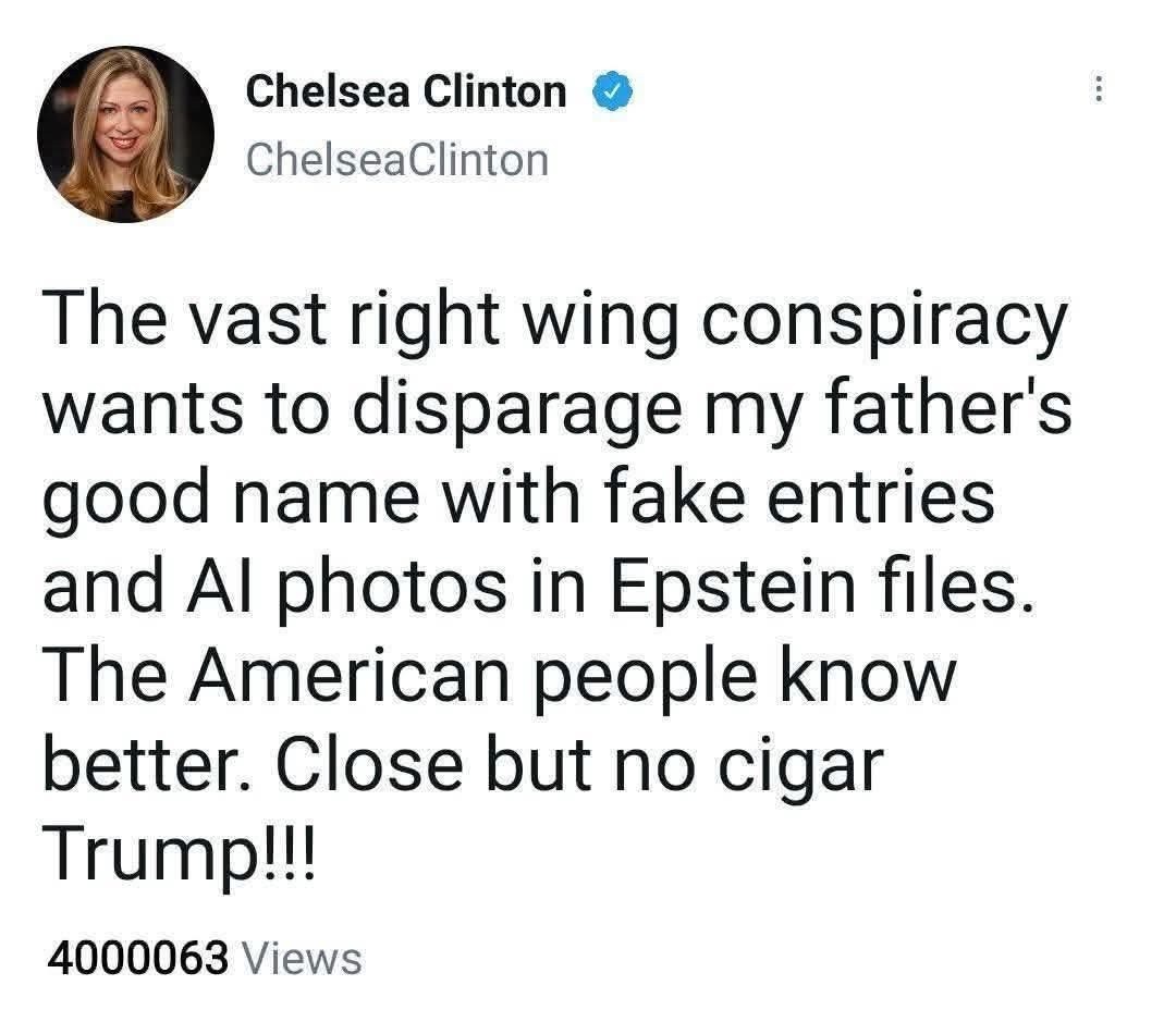 Chelsea’s daddy is Webb Hubble. The world doesn’t like to talk about it, but look at them ffs. She looks EXACTLY like him and nothing like Bill